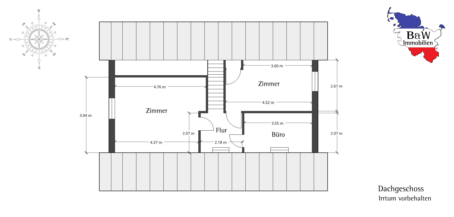Dachgeschoss: Flur, 2 Zimmer, Abstellraum