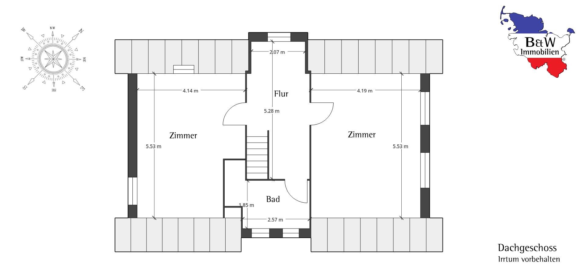 Dachgeschoss: 2 Schlafzimmer, Flur, Badezimmer mit Dusche